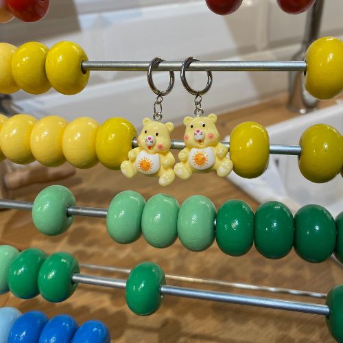 Boucle d’oreille bisounours jaune, en acier inoxydable et en résine